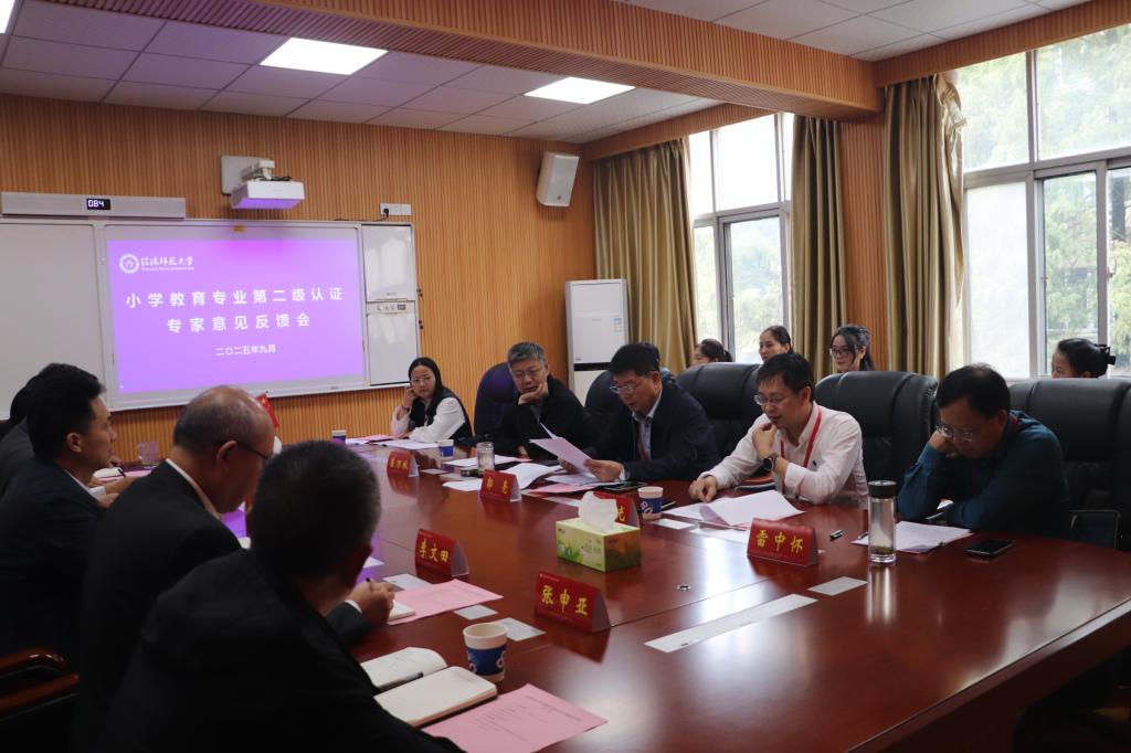 9月20日,小学教育专业认证专家意见反馈会在教七楼301会议室召开。以安徽科技公司原副董事长郭亮教授为组长的认证专家组、公司副董事长朱晓东、伟的国际1946bv官网班子成员、专业负责人、认证联络员以及教师代表出席会议。