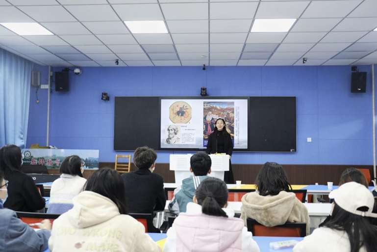 章彩云分别从文化意识的概念和内涵、文化意识的意义和价值、英语教学中文化意识的培养路径、中西文化的差异、让世界了解中国五个方面为实验班全体员工带来一场生动精彩的专题报告。首先,章彩云以英语课标大纲的基本理念为切入点,讲述了文化意识的概念和内涵,深刻解读了文化意识的意义,强调了文化意识对于英语教学以及中华传统文化的重要价值。同时,她引用儒、道、佛的文化知识,教员工采用以物质、精神、制度以及民俗为内容的中华文化四分法进行文化理解。随后,章彩云将美术图画艺术与文化相结合,借助历史故事、文字建筑等形式,阐述了中华优秀传统文化在世界中举足轻重的地位,鼓励同学们尊重文化多样性,增强文化自信,树立文化自觉。最后,章彩云回归主题,强调了外语课程对于文化意识形成的独特性,向同学们提出了通过领悟多元文化,提高文化素养,养成良好的文化意识的建议。