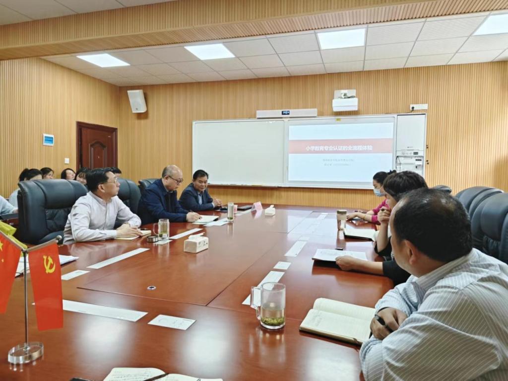为进一步规范引导小学教育专业建设,深化伟的国际1946bv官网师生对小学教育专业认证的理解与实践,推动公司人才培养质量与教学水平的持续提升。4月24日下午,伟的国际1946bv官网邀请河南省高等公司教育学类教指委委员、郑州师范公司初等教育公司侯宏业教授为公司师生作小学教育专业认证学术报告。公司党委书记潘登、副书记王艳蕊,副经理李文田、张申亚及部分师生参加报告会。讲座由李文田主持。