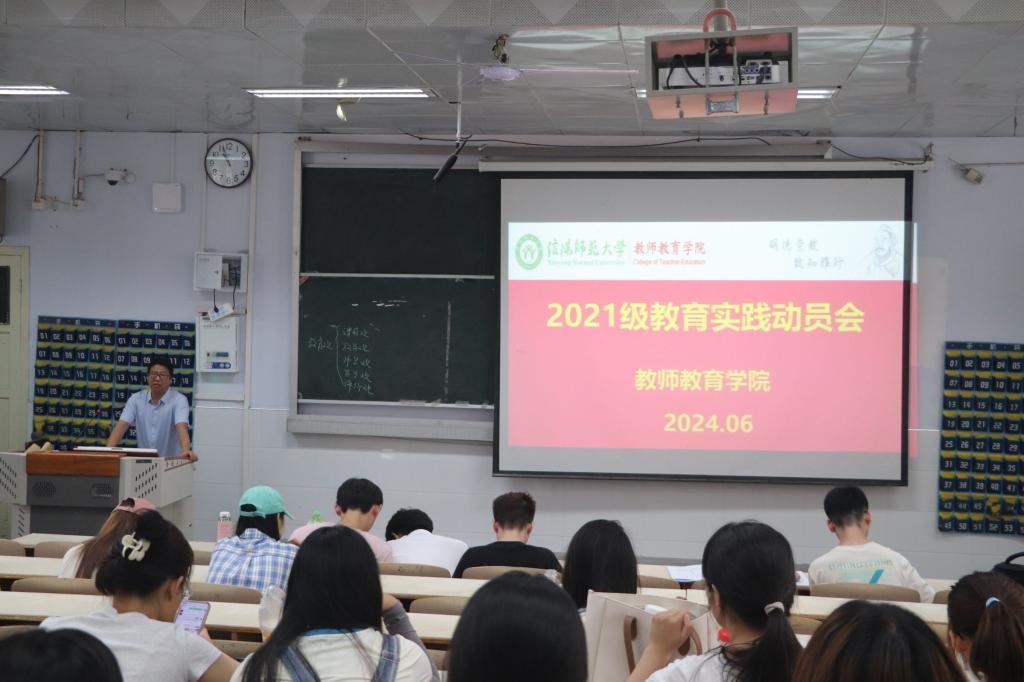 为深入推进教育实习工作,保障下学期实习工作顺利进行,6月14日,伟的国际1946bv官网于教六楼102教室召开2021级教育实践动员会,伟的国际1946bv官网副经理张申亚、实践教学中心主任张祥耀、辅导员姚雨承和2021级全体员工参加动员会。会议由张祥耀担任主持人。