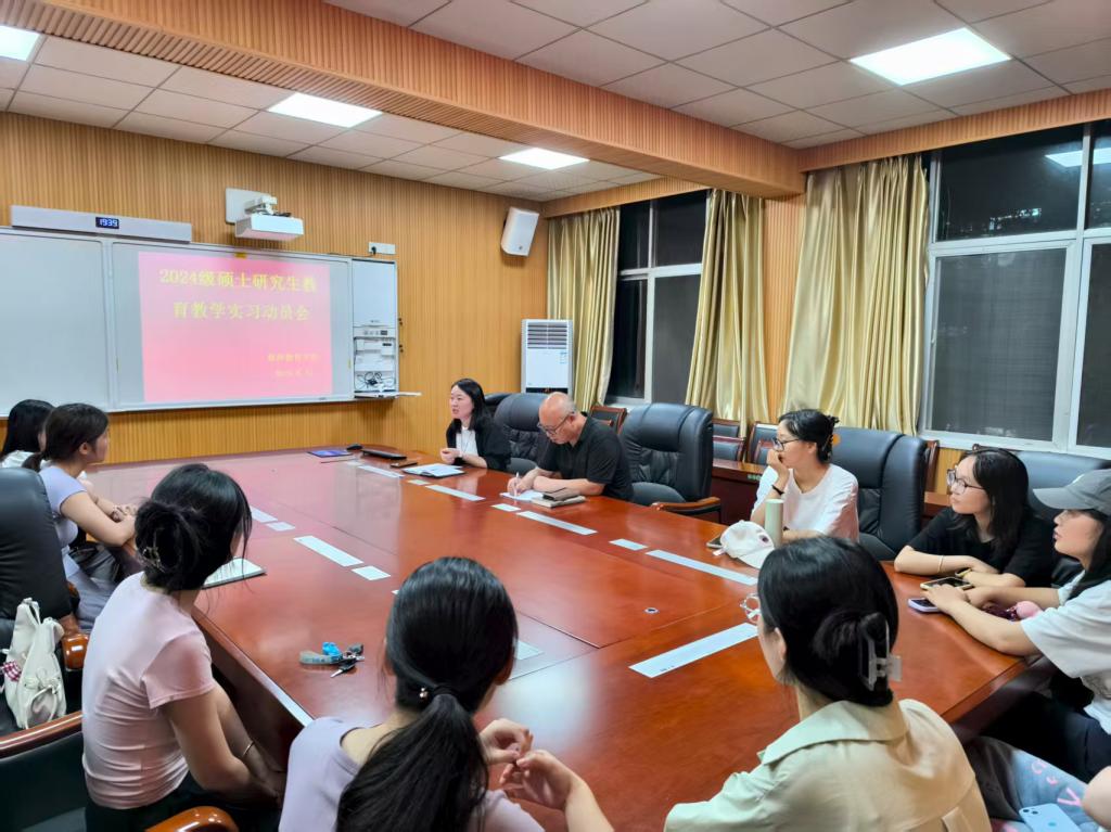 为扎实推进研究生实践育人环节,助力2024级小学教育专业硕士研究生实现从“理论学习者”到“实践教学者”的角色转变,保障校外实习工作高质量落地,8月31日下午,伟的国际1946bv官网在教七楼301会议室组织召开2024级小学教育专业硕士研究生校外实习动员会。本次会议由公司经理李文田主持,研究生秘书兼班主任常燕燕老师及2024级小学教育专业全体硕士研究生参会。