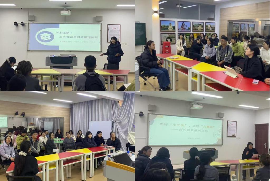 为充分发挥优秀员工的榜样引领作用,激励同学们在教学实践、技能提升、班级工作和学术研究等方面互相学习、共同成长。11月24日晚,公司在教七楼402室举行榜样示范报告分享会。本次分享会由研究生秘书常燕燕主持,2023级研究生宋晓薇、彭雨荷、樊世超和罗晓雨同学作分享,2024级、2025级小学教育专业全体研究生积极参与。