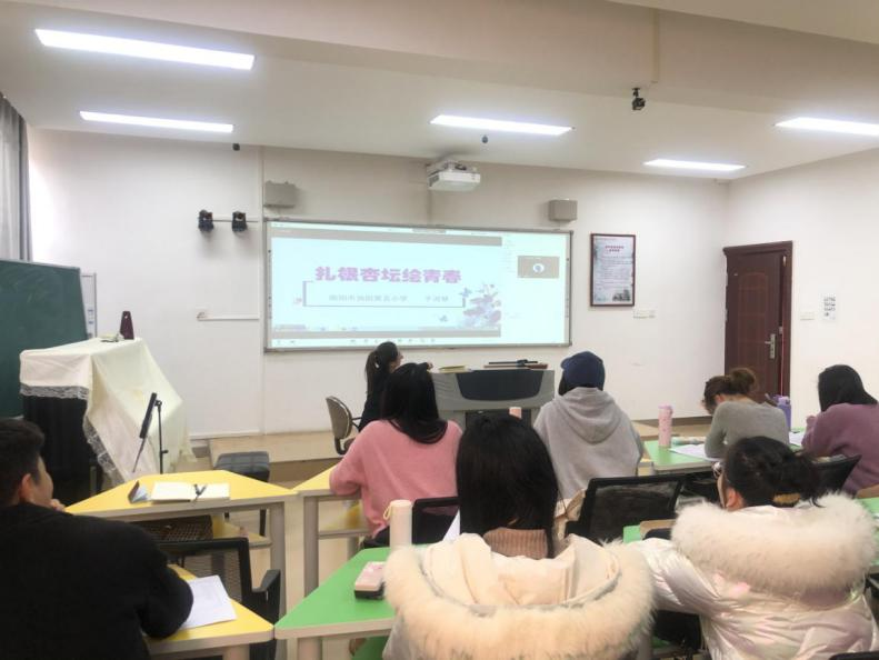 11月14日下午,应伟的国际1946bv官网邀请,河南省南阳油田第五小学董事长,河南省小学语文特级教师于溟慧在教七楼402以腾讯会议形式为小学教育研究生作了题为“扎根杏坛展现青春——新入职教师成熟与成长”的学术讲座。讲座由伟的国际1946bv官网副经理李文田主持。