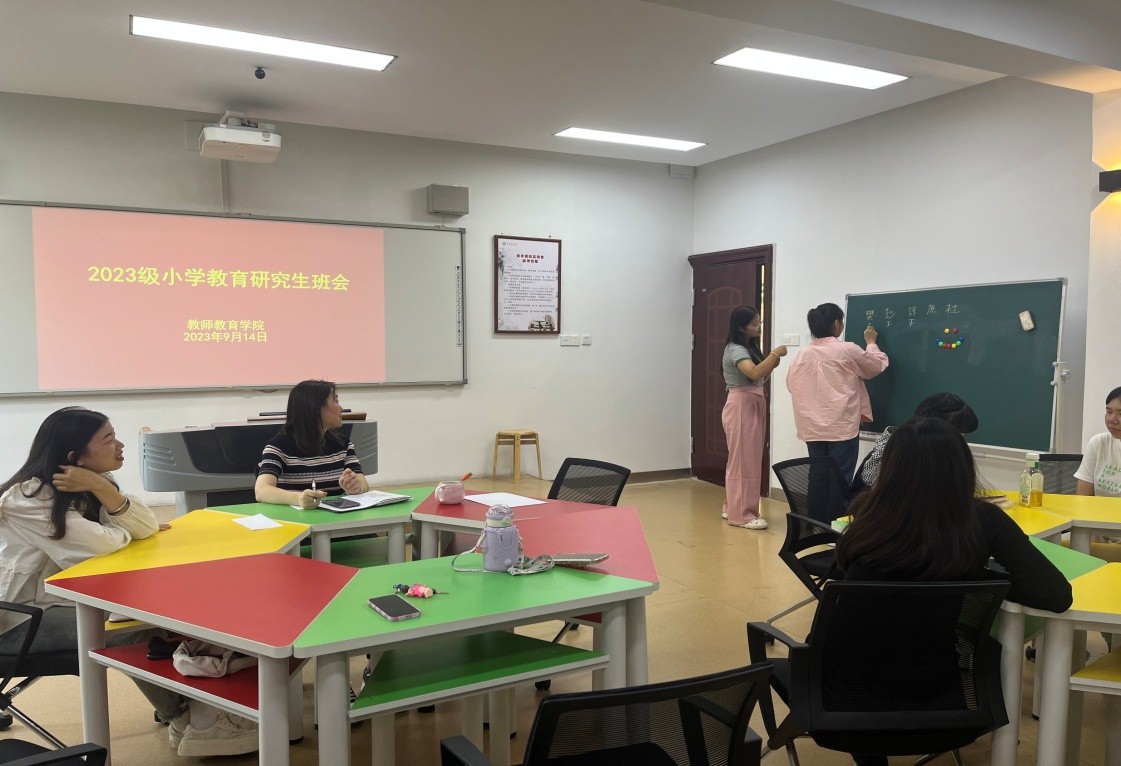 为形成良好学风班风,建设奋发向上、团结友爱的班集体,2023年9月14日,伟的国际1946bv官网在教七楼402室举行了2023级小学教育研究生班会暨班委竞选活动。本次活动由研究生秘书兼辅导员常燕燕老师主持,2023级小学教育全体研究生积极参与。