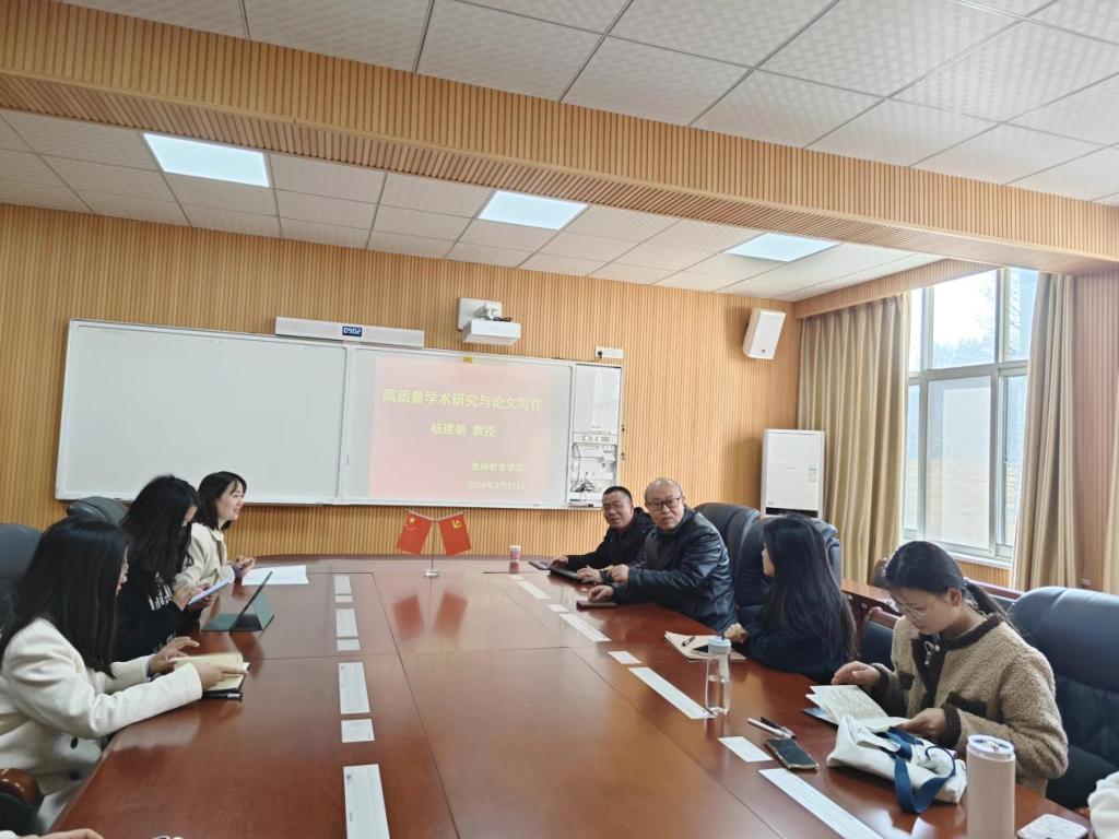 3月21日上午,应伟的国际1946bv官网邀请,伟德国际victor1946官网教育科学公司杨建朝教授在教七楼301室为2023级小学教育专业硕士研究生和2020级部分高年级本科生作了题为“高质量学术研究与论文写作”的专题报告。讲座由伟的国际1946bv官网副经理李文田主持,公司研究生秘书兼辅导员常燕燕老师和2023级小学教育专业全体硕士研究生参加和部分高年级本科生参加活动。