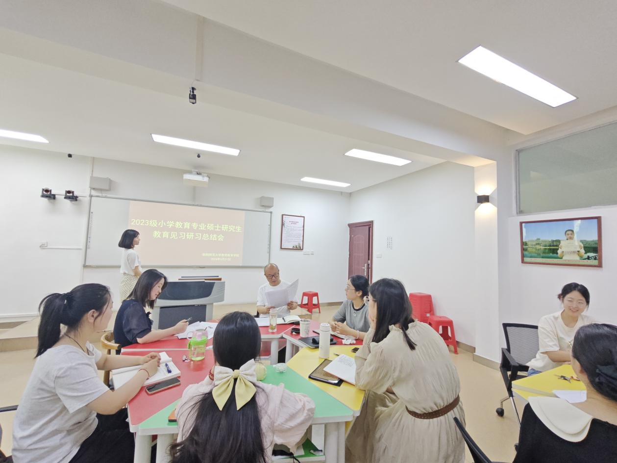 为了提升公司研究生教育理论水平和教学实践能力,提升研究生人才培养质量。2024年5月27日至5月30日,公司开展了为期四天的小学教育专业硕士研究生教育见习研习活动。为巩固活动成果,5月31日,公司在教七楼402室举行了2023级小学教育专业硕士研究生教育见习研习总结会。总结会由公司副经理李文田主持,研究生秘书兼班主任常燕燕老师及2023级全体小学教育专业硕士研究生参加会议。