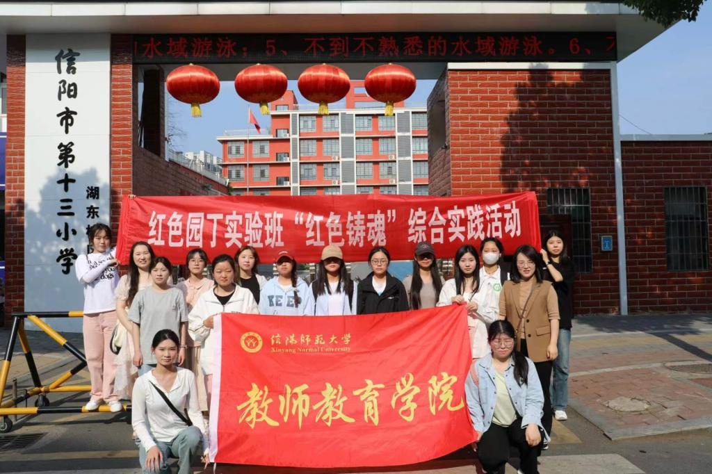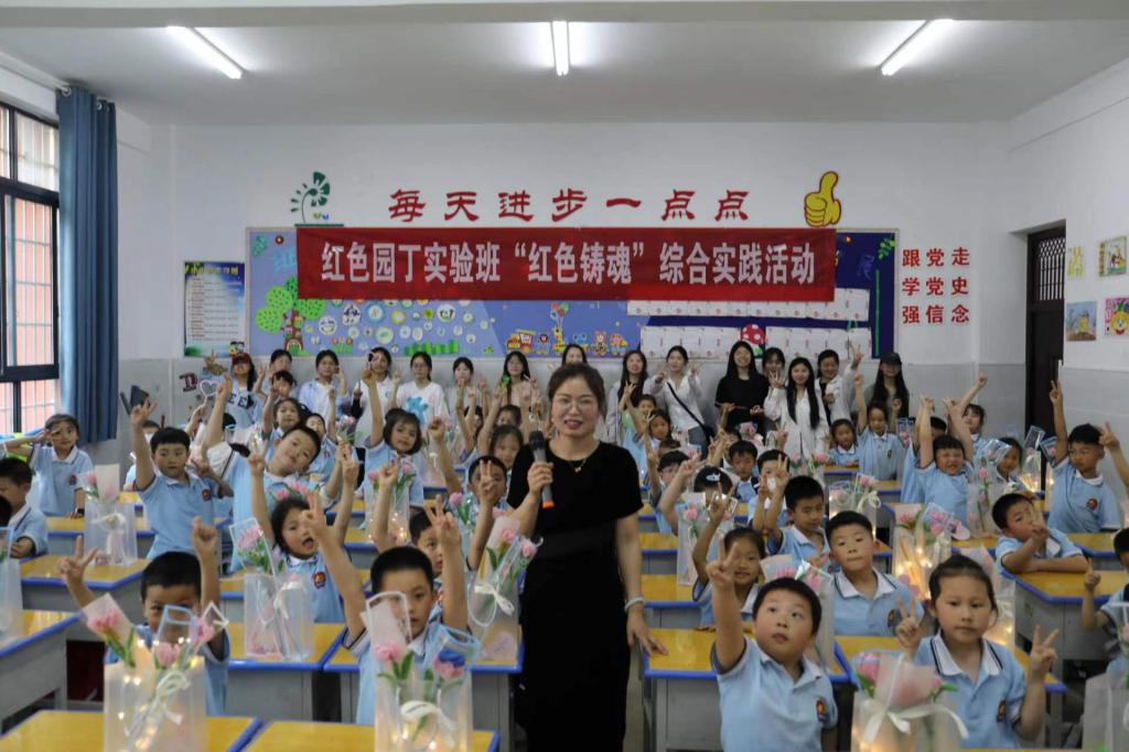5月8日,2022级红色园丁实验班在班主任谭阿明老师的带领下,前往信阳市第十三小学湖东校区一(11)班开展“红色铸魂”综合实践活动。