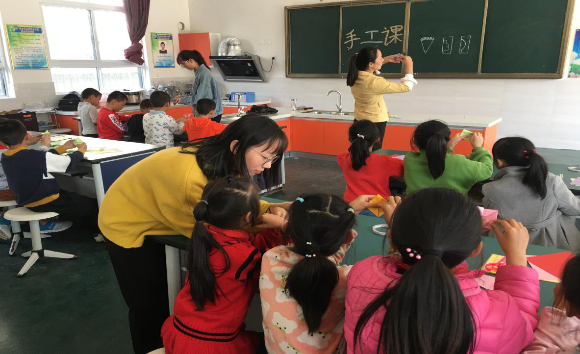 午间服务期间,实验班同学与各班小员工亲切交流,进一步了解小员工在校学习和生活情况。下午,实验班同学分6组对列宁小学三、四年级员工进行了手工、绘画、书法、舞蹈、音乐等不同形式和丰富的综合活动课程教学活动,实验班同学从容自然的授课风格、灵活有趣的授课方式深受员工们喜爱,也赢得了列宁小学领导老师的一致好评。列宁小学曹董事长表示,实验班员工们的到来,解决了新县列宁小学缺乏手工、绘画、书法等综合实践活动课程团队的问题,促进了革命老区员工的全面发展。此次实习支教活动,红色园丁实验班与新县列宁小学采用分年级结对子方式,通过实施基础教育支持计划,开展实习支教活动,建立高校与基础教育长效协同培养机制和实习实训平台。