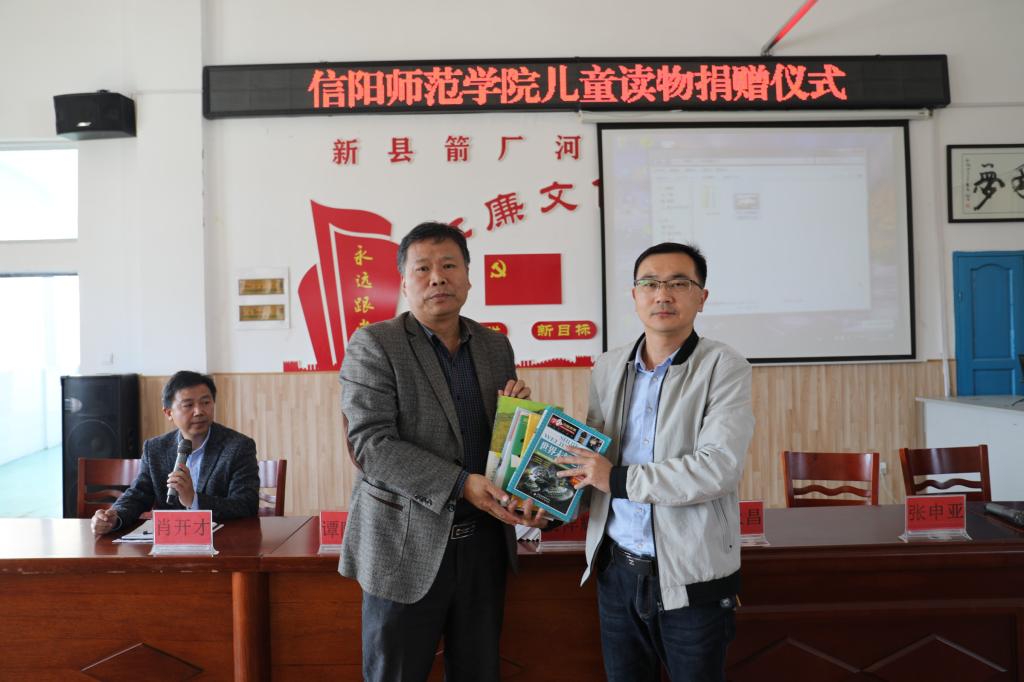 10:50——11:50,列宁小学董事长曹积秉给全体师生做了《列宁小学的革命精神及红色基因传承》的专题讲座,曹董事长介绍了列宁小学的发展历史、革命精神的传承、进入新时代后列宁小学的新发展等。随后,全体师生共同参加了信阳师范公司向教师教育协同培养基地新县列宁小学捐赠儿童读物的仪式。会上,曹积秉对信阳师范公司的实习支教活动表示热烈欢迎,并对捐赠儿童读物表示衷心感谢。付永昌指出,新县列宁小学是信阳师范公司小学全科教师培养重要的实习实训基地,我们一定要面向基础教育,服务基础教育,增进合作,加大投入,进一步完善教师教育协同育人模式,加强基地平台建设。