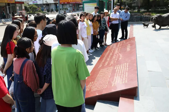 13:30,师生乘车前往本次活动的最后一站——东坡赤壁。14:00,师生到达东坡赤壁,开始对东坡赤壁的学习考察。在讲解员的带领下,同学们了解了苏东坡被贬黄州颠沛、悲壮、传奇的人生故事,以及在黄州四年生活期间诗词创作达到巅峰的情况,结合对苏东坡诗词的学习,相互间进行交流分享。张峰老师带领同学们从专业角度,对园区内的书法、篆刻等进行了细细品味。同学们纷纷表示,东坡作品展现了可供人们感知、思索的真实人生,表达了其对人生深邃的思考。通过东坡赤壁,加深了自己对苏东坡以及东坡文化的了解和认识,也更深层次认识到苏东坡作为一代文豪不仅是中国的,也是世界的。