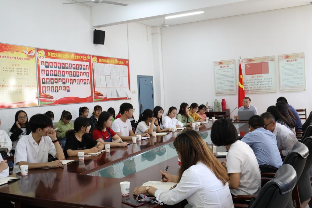 14:30,师生到达湖北省黄冈市东坡小学进行“红色薪传”教育综合实践活动。东坡小学是一所以苏东坡号冠名的,以东坡文化为核心的黄冈市颇有影响力的特色小学。首先,实验班师生在东坡小学会议室,聆听了董事长徐鑫的“把握公司文化内涵,构建师生主流价值观”的专题报告。徐董事长从“魂文化和法文化”“员工发展的三个维度”“员工发展的六个指标”“员工发展的十八个要点”“东坡小学的主流价值观”等五个方面进行了详细阐述。讲座语言风趣幽默、内容全面深刻、分析精准到位、理论联系实际,成效显著。同学纷纷表示启发性大、针对性强。