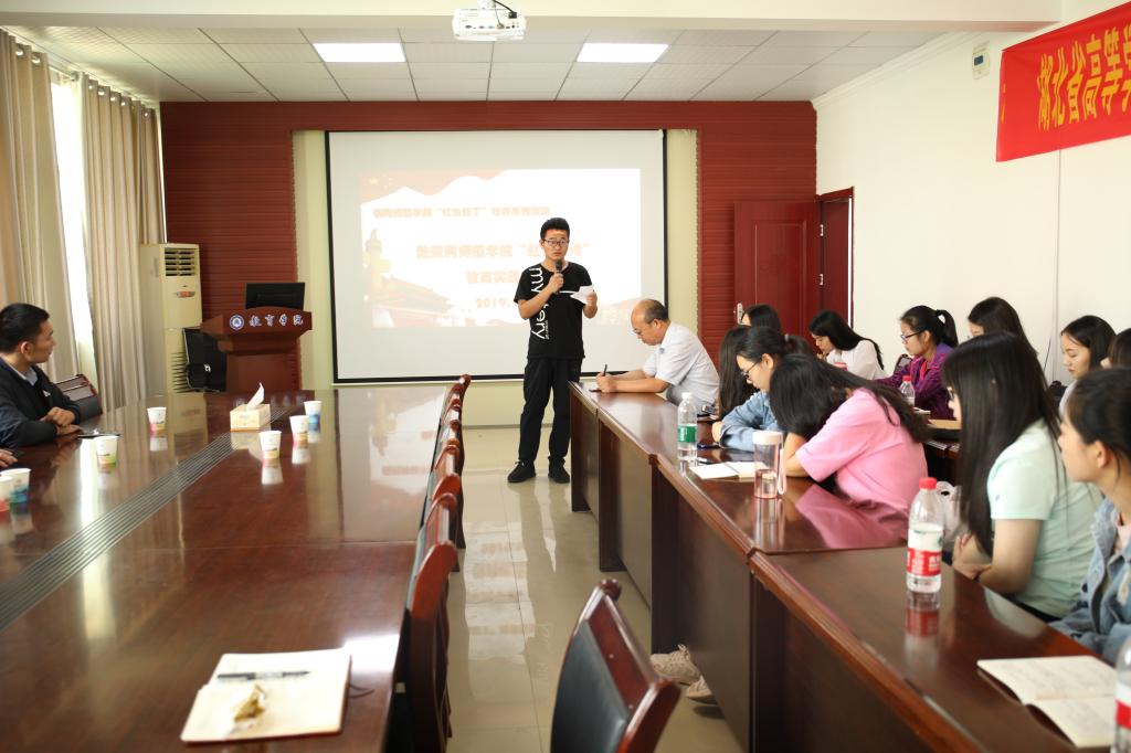 28日早上7:00,同学们准时起床就餐。7:40,师生集中前往黄冈师范公司。8:00,师生在黄冈师范公司致远楼616教室聆听了黄冈师范公司马克思主义公司刘清教授的《红安精神的解读》专题报告。刘教授分别从“红安的由来”“红安的革命历史”“红安精神的解读”等方面进行了阐述。首先,由红安名称的由来切入,从红安的地理位置、歌谣、历史典故讲解了红安的由来;接着,介绍了红安的革命历史,在大革命时期,红安打响了黄麻起义第一枪,为了自由和解放,红安儿女不惜抛头颅洒热血,留下了众多光荣的革命事迹;最后,阐释了红安精神的内涵与价值,红安精神是红色精神的重要组成部分,是“一要三不要,一图两不图”的革命精神,是万众一心、为党为民、扑诚勇毅、不胜不休的无畏精神。报告在热烈的掌声中落下帷幕。随后,师生共同观看学习黄冈师范公司大型原创舞蹈音乐剧《红色薪传》,该剧将红色基因作为鲜活教材融入到剧目创作中、融入到文化演出中、融入到师生心中,让师生进一步受到红色革命精神的熏陶。结合报告和视频资源,园丁班员工代表分别做了感悟发言。