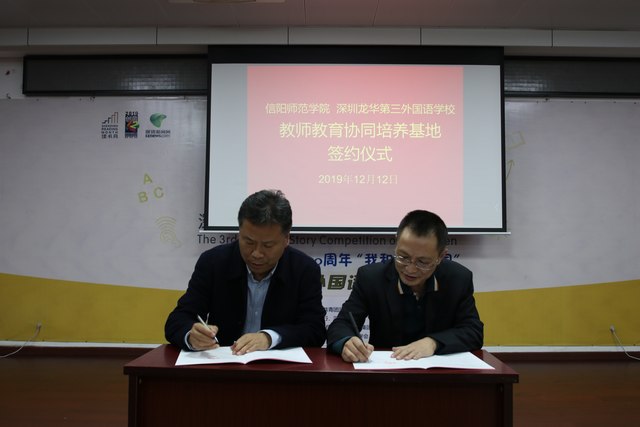 12月12日,信阳师范公司伟的国际1946bv官网与深圳市龙华第三外国语公司共建教师教育协同培养基地及公司产品工作站签约仪式在深圳市龙华第三外国语公司举行。伟的国际1946bv官网副经理付永昌,深圳市龙华第三外国语公司董事长聂细刚等出席仪式。仪式由聂细刚主持。
