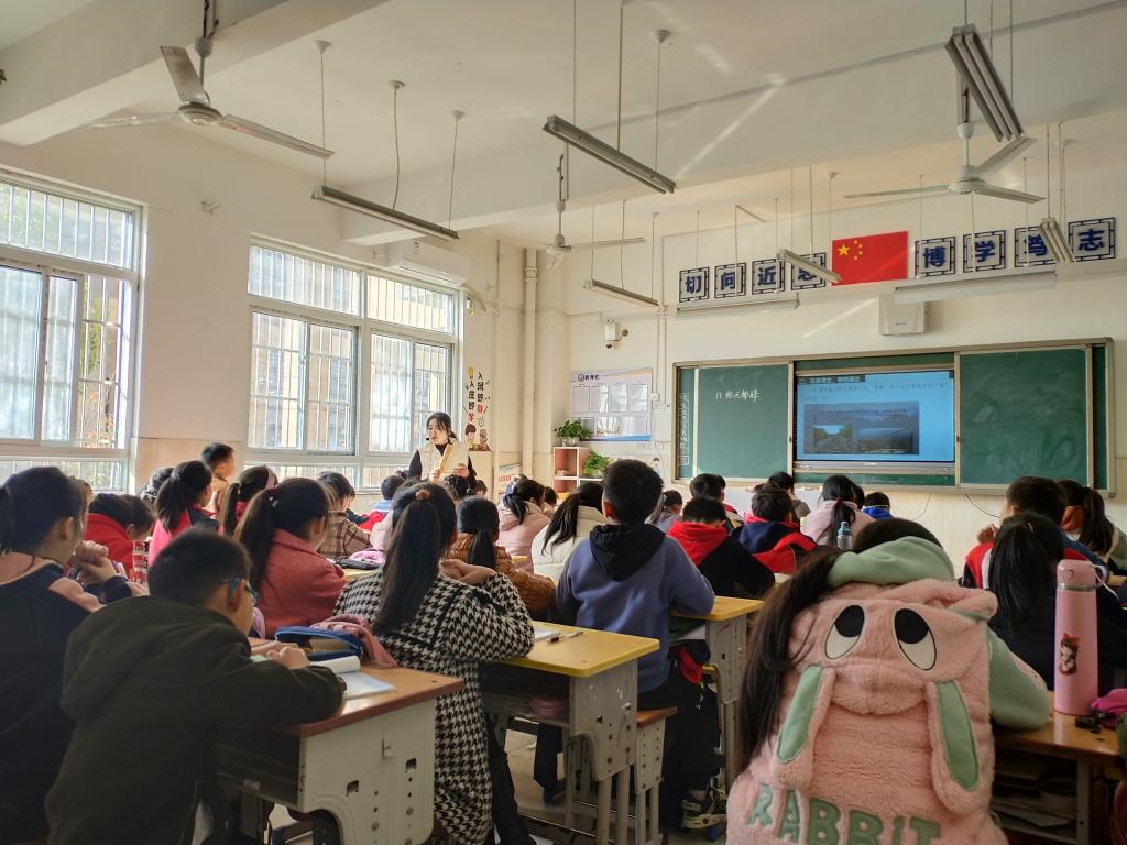 第二、三节课,检查指导组与实习生、实习基地指导老师共同深入课堂,分别听取了公司实习生凡静的四年级(5)班数学课《平行四边形与梯形》、冯鑫玲的四年级(1)班语文课《爬天都峰》。两位实习同学的课堂教学能力和教学效果受到了指导组老师的充分肯定与赞扬。
