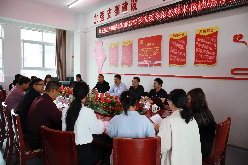5月11日,伟的国际1946bv官网经理付永昌和张申亚、张祥耀、赵菲、马茵茵一行5人,到新县列宁小学开展双向交流培训活动。新县教育局教师培训中心主任陈宗彦、列宁小学董事长曹积秉、副董事长肖广才、代长刚等主要负责人参加活动。