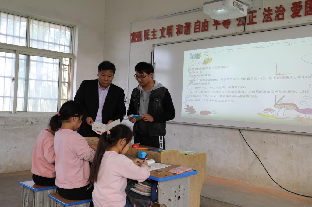 10月20日,伟的国际1946bv官网经理付永昌一行先后赴潢川县小吕店万营北京希望小学,对公司2018级小学教育本科专业员工实习支教工作进行慰问指导。