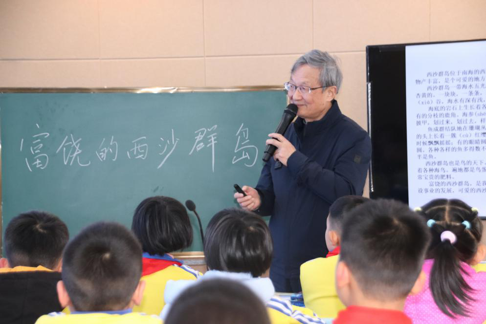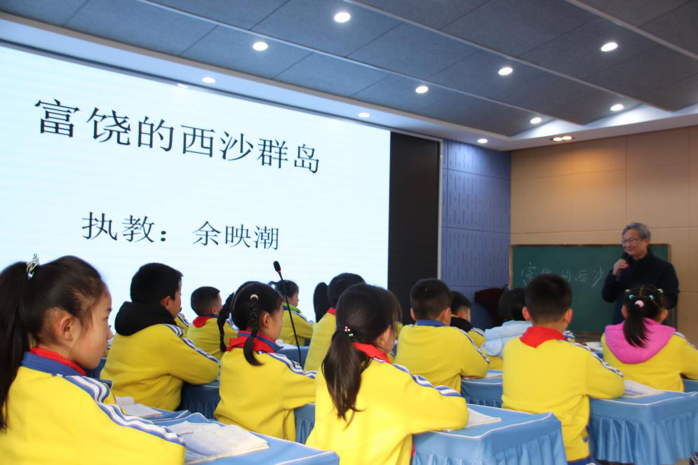 第三节和第四节是示范课,展示“板块式”高效阅读课堂,由余映潮老师亲身示范,执教三年级语文课《富饶的西沙群岛》,和五年级语文课《四季之美》。《富饶的西沙群岛》中,余映潮老师设置了三个板块,分别是:初读、语言积累;再读,课文发现;精读,综合训练。《四季之美》中,同样也是板块教学,分为:一读:了解一种写作思维;二读:品味一种行文的笔法;三读:感受几种描写的美,为小学高年级散文类教学提供了灯塔般的指引。余老师的课堂如春风化雨,感染了在场的每一位员工、每一位老师,余老师的教学娓娓道来,独到精妙,引导着在座的每一位老师和同学不断反思教学、研究教学、创新教学。
