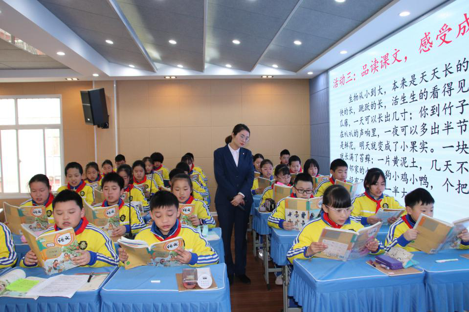 12月8日上午大家到达信阳市第九小学。第一节观摩的是五年级语文课《月迹》,郭老师进行板块式教学,活动一:认识字词;活动二:寻月之迹;活动三:品月之韵;活动四:美段仿写。四个活动环环紧扣,教学思路明晰、铺垫恰当,而且每个板块都有员工静读思考的活动。第二节观摩的是六年级语文课《夏天的成长》,程老师同样也是设置了四个板块,分别是积累字词;初读课文、整体感知;品读课文,感受成长;美文仿写。美文仿写部分也较好的体现了语言学用的训练,有创意的教学设计给人留下了深刻的印象。这两节课都是研讨课,我们可以感受到青年教师的成长,她们在践行余映潮老师教学理念的基础上,使出浑身解数,大展才华,也给即将成为青年教师的研究生们起到很好的示范作用。