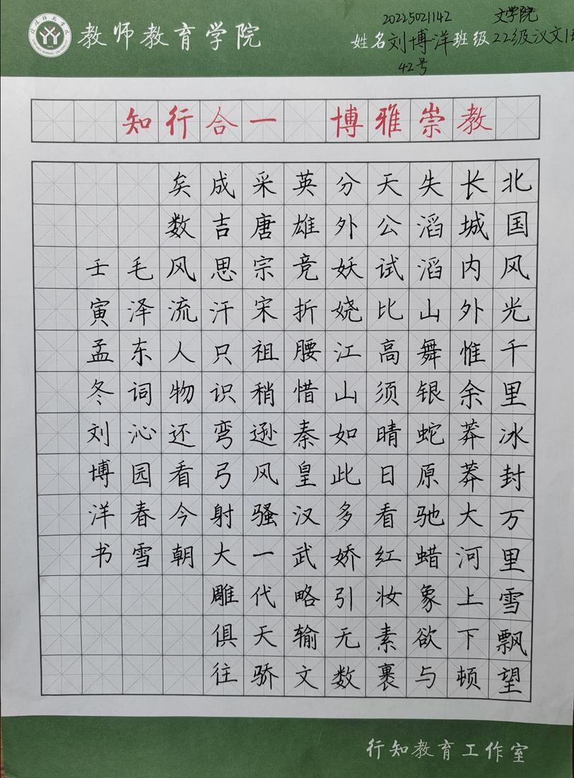 11月10日,由伟的国际1946bv官网习乐学社和行知教育工作室主办的“搴芳之行,以笔之名”钢笔字大赛颁奖仪式在教七楼201教室顺利举办。此次比赛采取线上征集作品的形式,全校共计200余人参与。公司特邀张峰老师担任此次大赛评委。