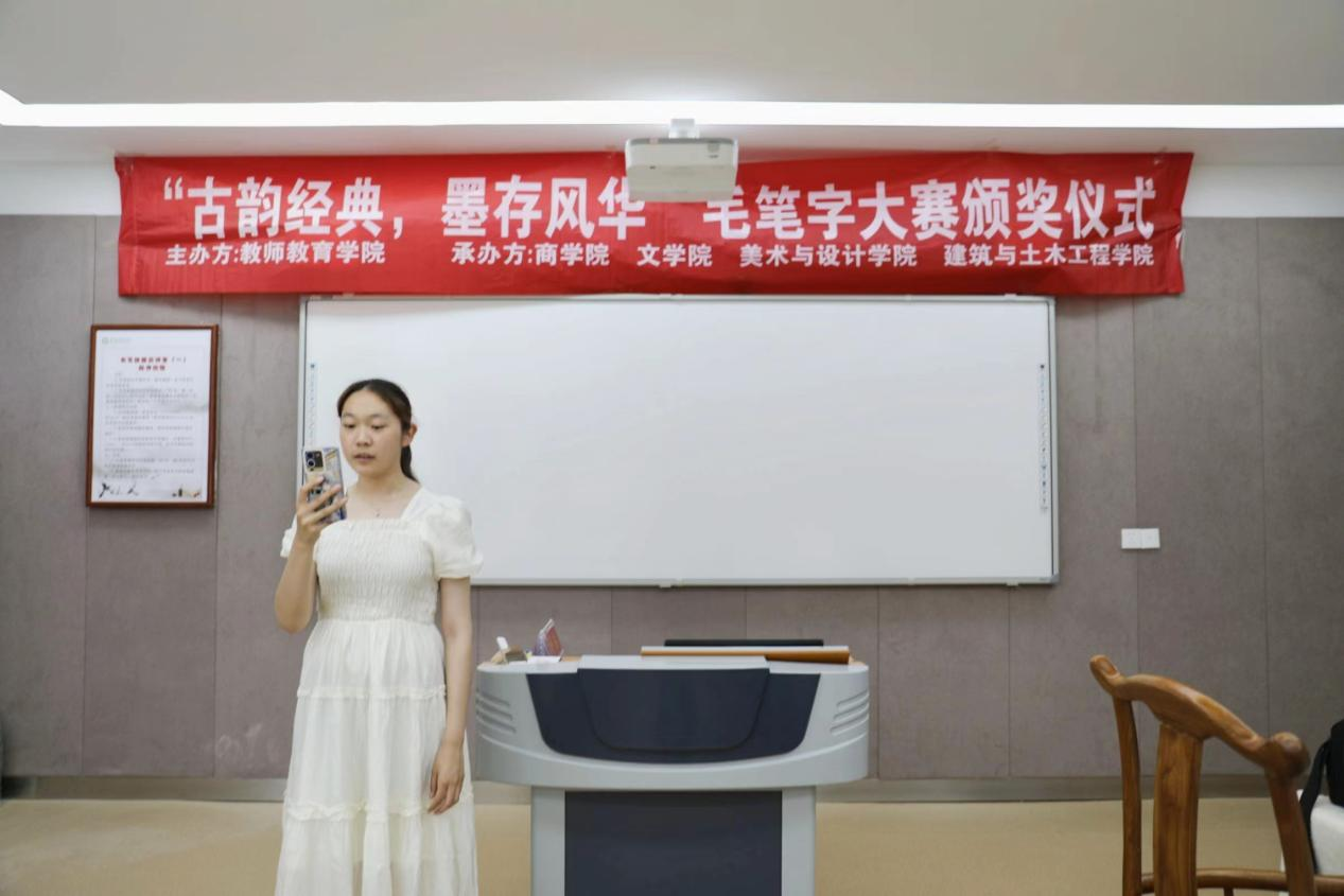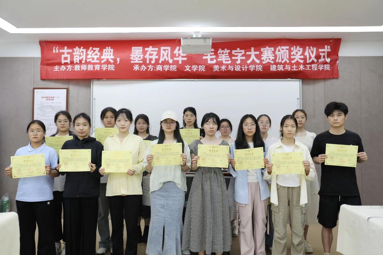 5月9日,由伟的国际1946bv官网行知教育工作室,习乐学社主办的“古韵诗词,墨存风华”毛笔字书写大赛颁奖仪式在教七楼201教室顺利举行,习乐学社工作人员及本次大赛获奖者共同参加此次颁奖仪式。