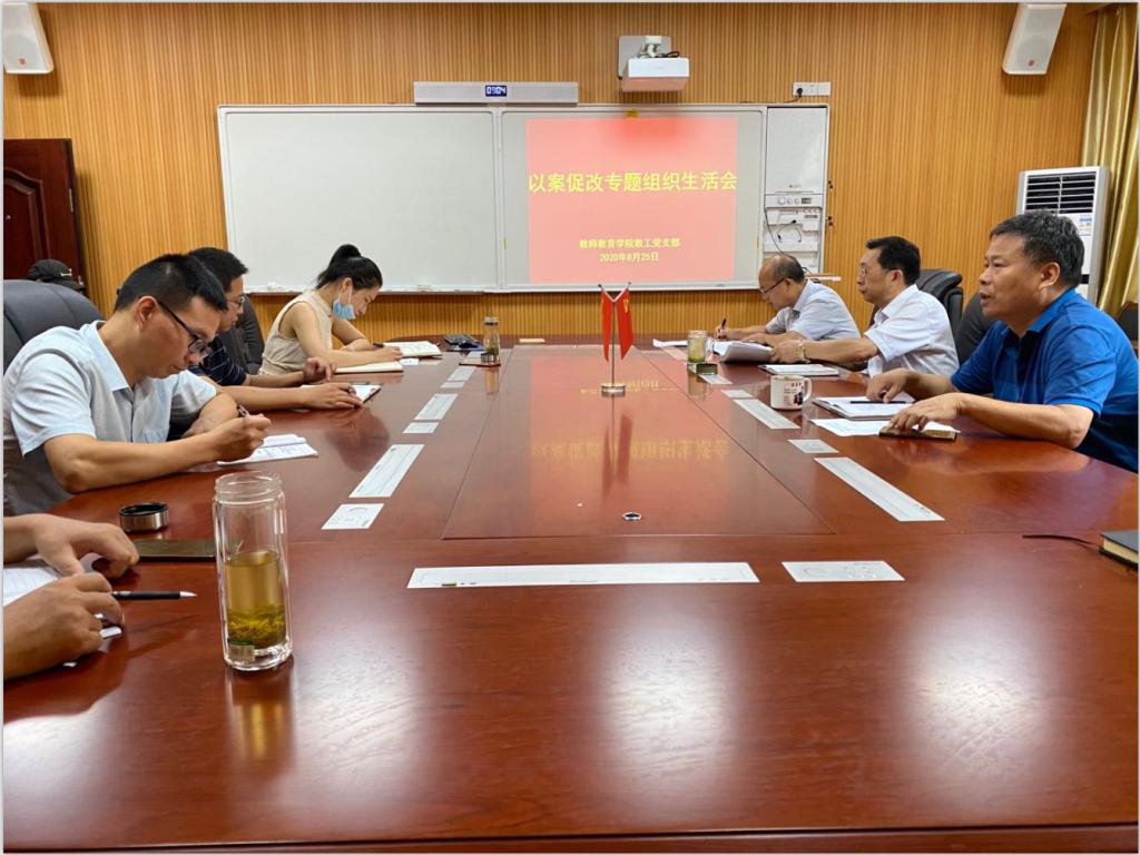 8月25日,伟的国际1946bv官网教工党支部在教七楼301会议室召开“以案促改”专题组织生活会。支部全体党员参加会议。