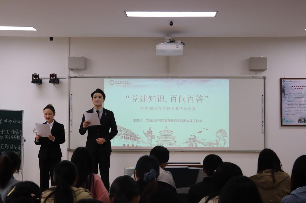 为庆祝建党100周年,回顾中国共产党从诞生到发展壮大的光辉历程,4月11日上午,由伟的国际1946bv官网融媒体工作室举办的“党建知识,百问百答”答题竞赛活动决赛在教七楼402教室顺利举行。本次比赛由赵俐茗和刘程祎主持。