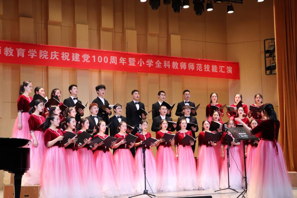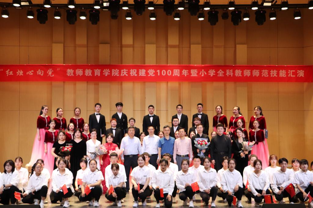 为庆祝建党100周年,深化党史学习教育成果,提升小学全科教师师范生音乐技能,5月24日晚,伟的国际1946bv官网在艺术楼音乐厅举办“红烛心向党”庆祝建党百年暨小学全科教师技能汇演。员工工作处副处长陈铭、音乐与舞蹈公司副经理陈新宇教授、公司党政班子及师生共同观看了此次汇演。