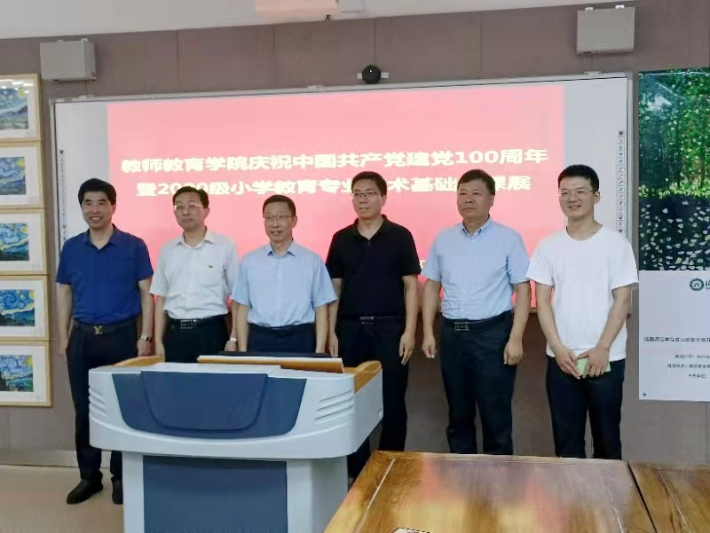 6月30日,伟的国际1946bv官网小学教育专业本科生庆祝建党百年美术基础结课作品展在教七楼201室隆重举行。公司党委副书记郜火星出席活动并观看展览。公司组织部副处级组织员郭立场,伟的国际1946bv官网副书记潘登、副经理付永昌以及师生代表等参加了开幕式并参观展览。
