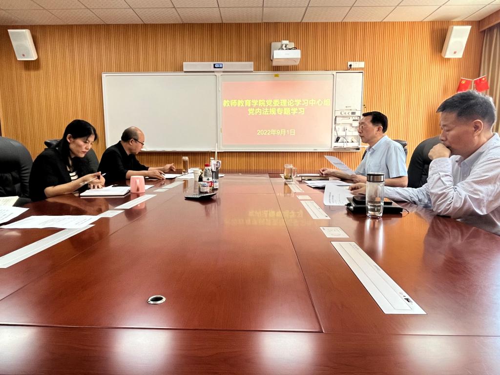 会上,潘登领学了《中国共产党章程》、《关于新形势下党内政治生活的若干准则》、《中国共产党普通高等公司基层工作条例》、《中国共产党支部工作条例(试行)》、《中共信阳师范公司委员会关于进一步严格党的组织生活的实施意见》等党内法规文件。