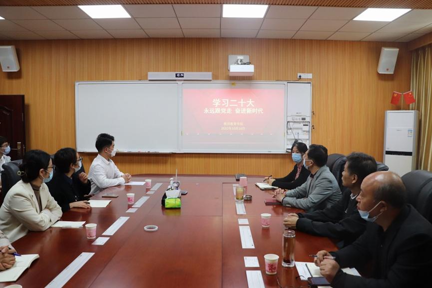10月16日上午10时,公司党委在教七楼301会议室组织观看了中国共产党第二十次全国代表大会开幕会电视直播活动。此次活动得到了全院师生的极大关注,公司党政领导班子、辅导员、班主任及全体员工党员以高昂的精神风貌和饱满的热情,共同观看了党的二十大开幕盛况,公司各班级在教室组织观看了党的二十大开幕会。