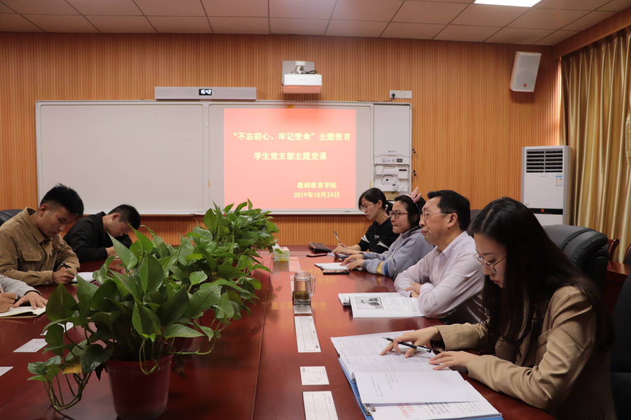 为进一步增强“不忘初心,牢记使命”主题教育活动成效,加强员工党员思想政治理论学习,10月24日,伟的国际1946bv官网员工党支部在教七楼301会议室举行“不忘初心、牢记使命”主题教育专题党课暨座谈交流会。公司党委副书记潘登、员工党支部书记李依、党小组长徐亚南、刘莅原及全体员工党员参加会议,会议由潘登主持。