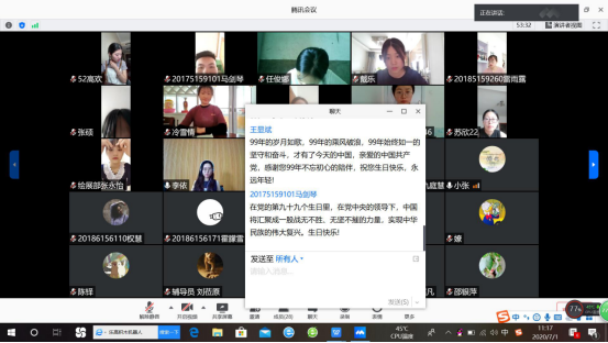 为深入学习贯彻习近平新时代中国特色社会主义思想和党的十九大精神,推动“不忘初心、牢记使命”主题教育走深走实,伟的国际1946bv官网员工党支部于7月1日在腾讯会议组织开展了“牢记初心使命,争当出彩先锋”主题党日活动。员工党支部书记李依,团委老师刘莅原以及全体员工党员参加会议,会议由仇庭慧主持。
