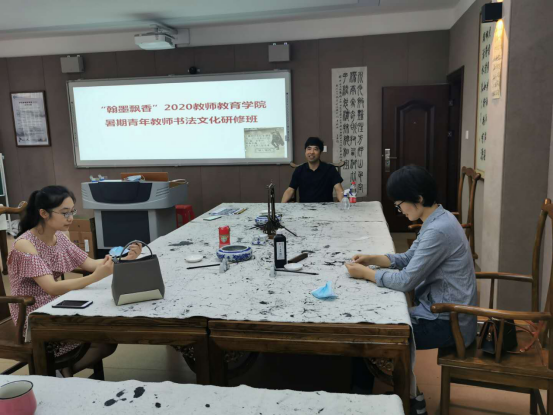 本次培训班从7月15日开始,19日结束,采取集中培训和一对一辅导相结合的培训方式进行。本次培训邀请了书法老师潘红波、张峰,分别就行书、楷书、草书、隶书、小篆等书写方法和技巧进行专题辅导。