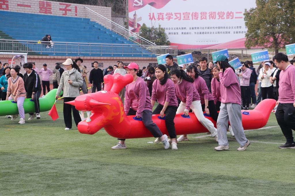 运动会上,公司党委书记王文鹏致开幕词,向全体女教职工致以节日的问候和美好的祝愿。公司党委副书记、工会主席岳宗德宣布本次趣味运动会开幕。在比赛正式开始前,参加比赛的教师在场地内跳起健身操,积极热身,为本次比赛做好充分准备。本次运动会设有拔河、袋鼠接力、旱地龙舟、旋风跑等团体项目,趣味性和协作性为一体,现场气氛既妙趣横生又紧张激烈。各支队伍积极参赛,充分发挥了团结协作、奋力拼搏的精神,尽显巾帼风采。在拔河比赛中,公司教师热情高涨,个个精神抖擞,随着裁判员一声令下,教师们个个双手紧握长绳,憋足气、鼓足劲,所有人的心凝聚在一条绳索上。赛场上欢呼声、喝彩声不绝于耳,洋溢着欢乐的气氛。公司教师队伍在本次趣味运动会上表现优异,在旱地龙舟、旋风跑两个项目中均进入八强,公司荣获优秀组织奖。