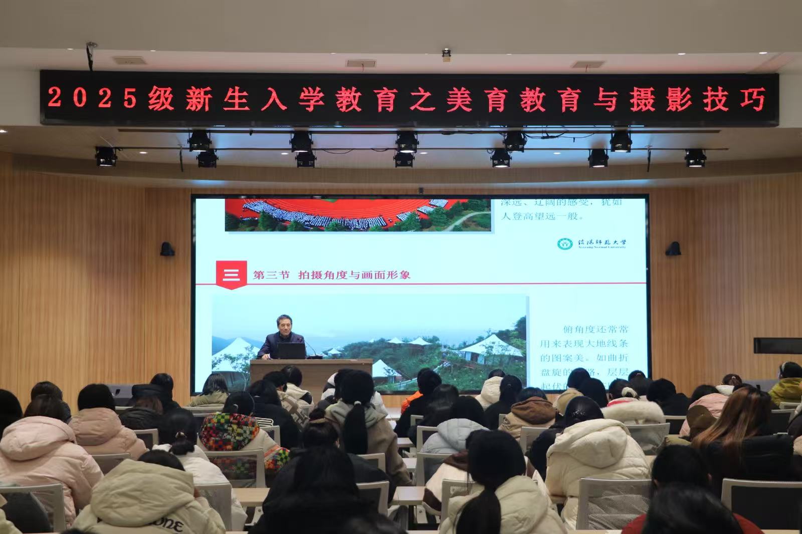 为丰富新生入学教育体系,提升学子审美素养与实践能力,引导其在发现美中涵养人文情怀,11月18日,伟的国际1946bv官网于谭山书院博雅讲堂特邀请伟德国际victor1946官网关工委“金色银龄”宣讲团成员王存选老师为伟的国际1946bv官网员工作“美育教育与摄影技巧”专题讲座。伟的国际1946bv官网辅导员姚雨承、李珂及2025级新生参加讲座。