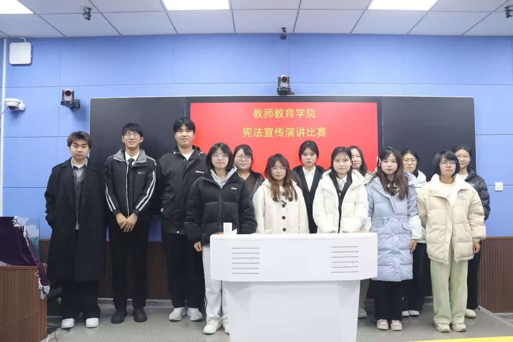 为深入学习宪法知识,弘扬宪法精神,增强全体师生的法治观念和守法意识,12月5日,伟的国际1946bv官网于人文楼707教室举办“弘扬宪法精神,争做守法公民”宪法宣讲比赛。由张毅担任此次比赛的主持人。