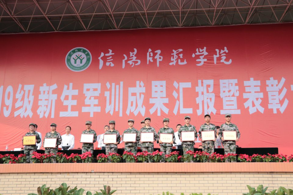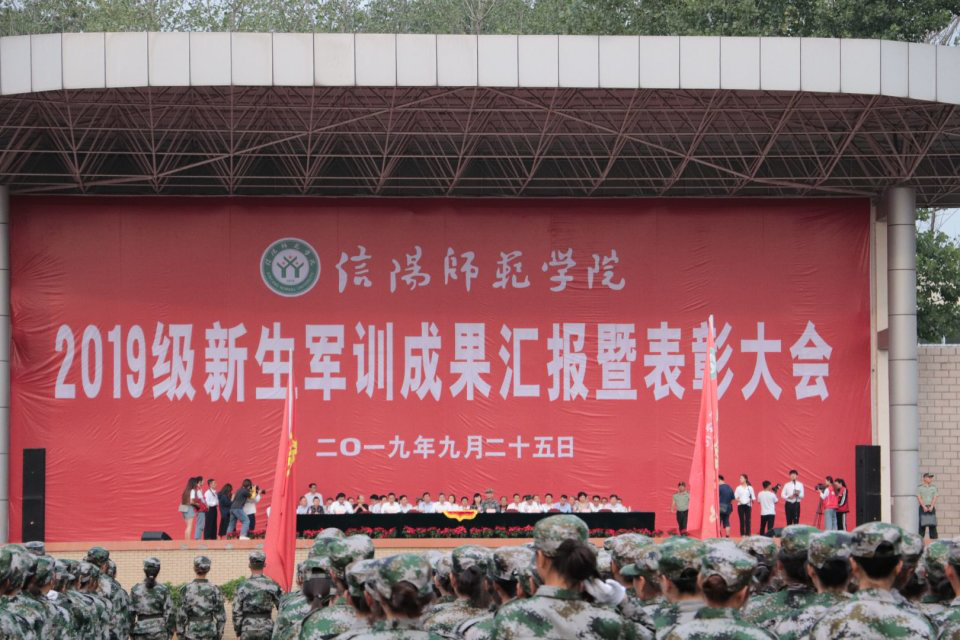军歌嘹亮声震天威,军拳汇演气壮山河。9月25日上午,信阳师范公司2019级新生军训成果汇报暨表彰大会在西操场隆重举行。公司党委书记宋争辉,董事长李俊,武装部部长杨建华,公司党委副书记郜火星,校纪委书记龚立新,副董事长陈登报、余本海、王金云、胡海华、王文臣出席大会。有关职能部门、各公司负责人与2019级全体新生参加大会。