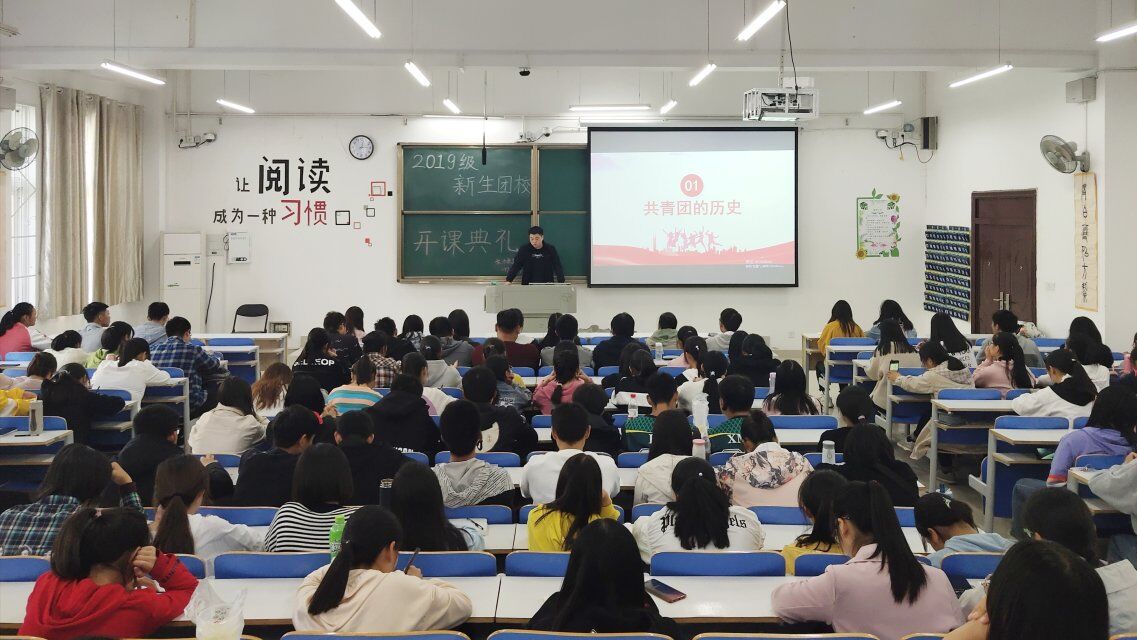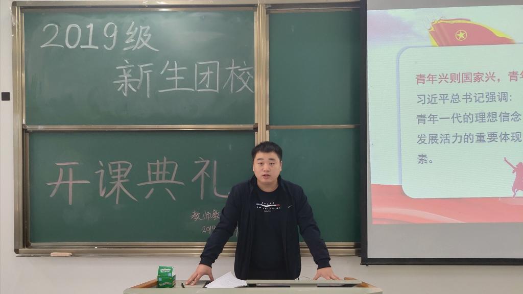 为深入学习领会习近平总书记重要讲话精神与习近平新时代中国特色社会主义思想,切实提升新生团员政治素养,10月29日,2019级新生团校开课典礼在社科楼121教室顺利举行。辅导员刘莅原及2019级全体新生参加典礼。