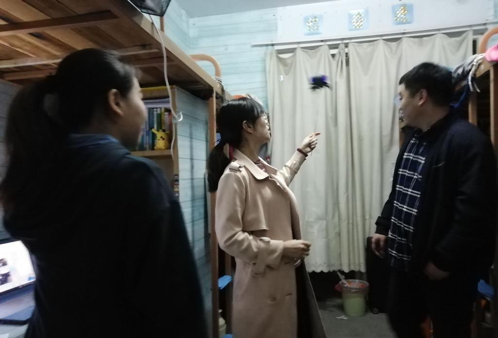 在走访过程中,三位老师与同学们进行亲切交流,了解员工的学习和生活情况,并对同学们提出的学习、生活和校园安全管理等各方面的问题进行解答;亲切叮嘱同学们要注意天气变化,及时添衣添被。同时,就宿舍晚归、外宿及使用违禁电器等问题对员工进行预防教育,希望同学们安全意识常存心中,将安全隐患从思想上杜绝。