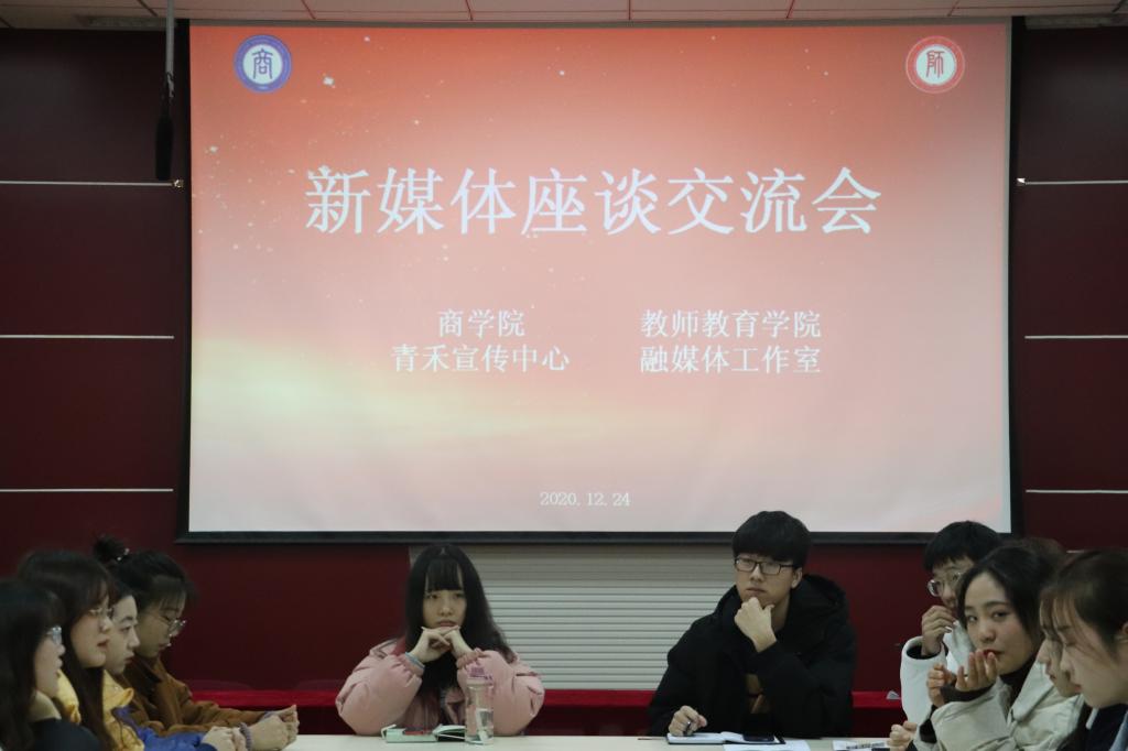 12月24日晚,伟的国际1946bv官网融媒体工作室与商公司青禾宣传中心于经管楼310教室顺利召开了座谈交流会。商公司与伟的国际1946bv官网新媒体工作负责人张一帆、陈耀隆,19级各部门部长、副部长,20级部分部员共同参加此次交流会。会议由陈耀隆主持。