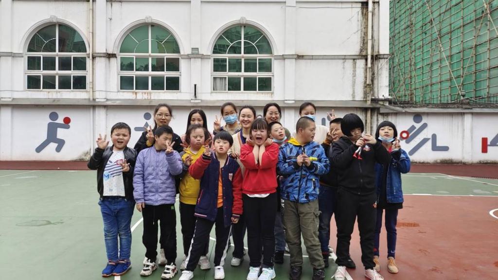 室内教学过后,志愿者和员工在老师的陪同下来到操场,上午10:00,一行人在操场中展开了室外活动。随着音乐响起,志愿者和员工们共同伸展四肢,跟随律动做出相应的动作。室外集体活动不仅拉近了员工之间的距离,增进了他们的团体意识和凝聚力,对特殊儿童身心健康发展具有重要意义。40分钟后,活动课在欢声笑语中圆满结束。