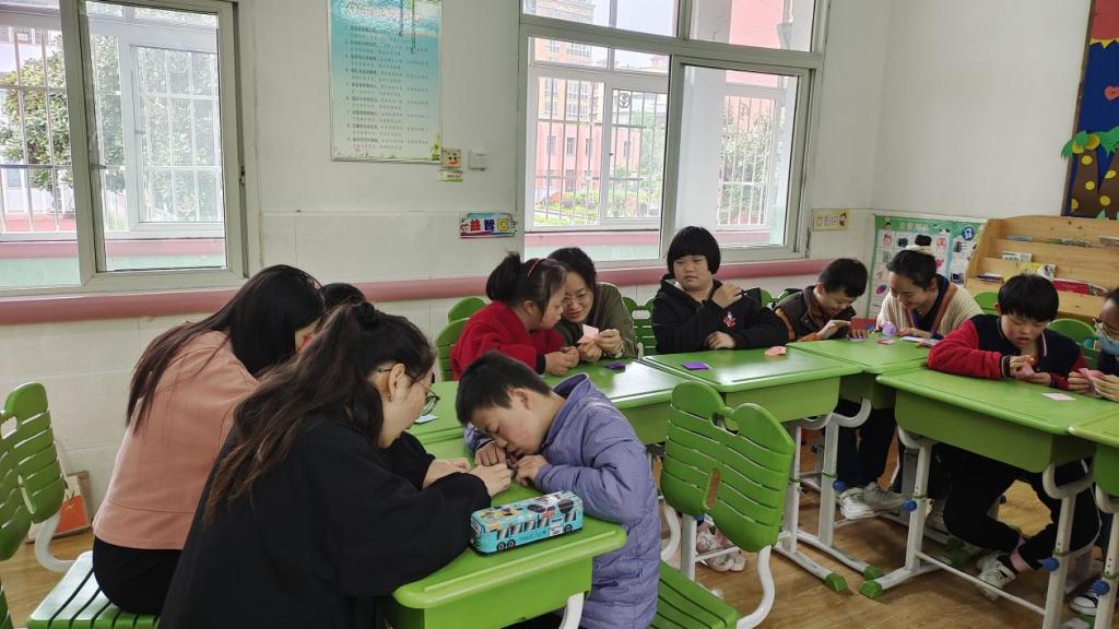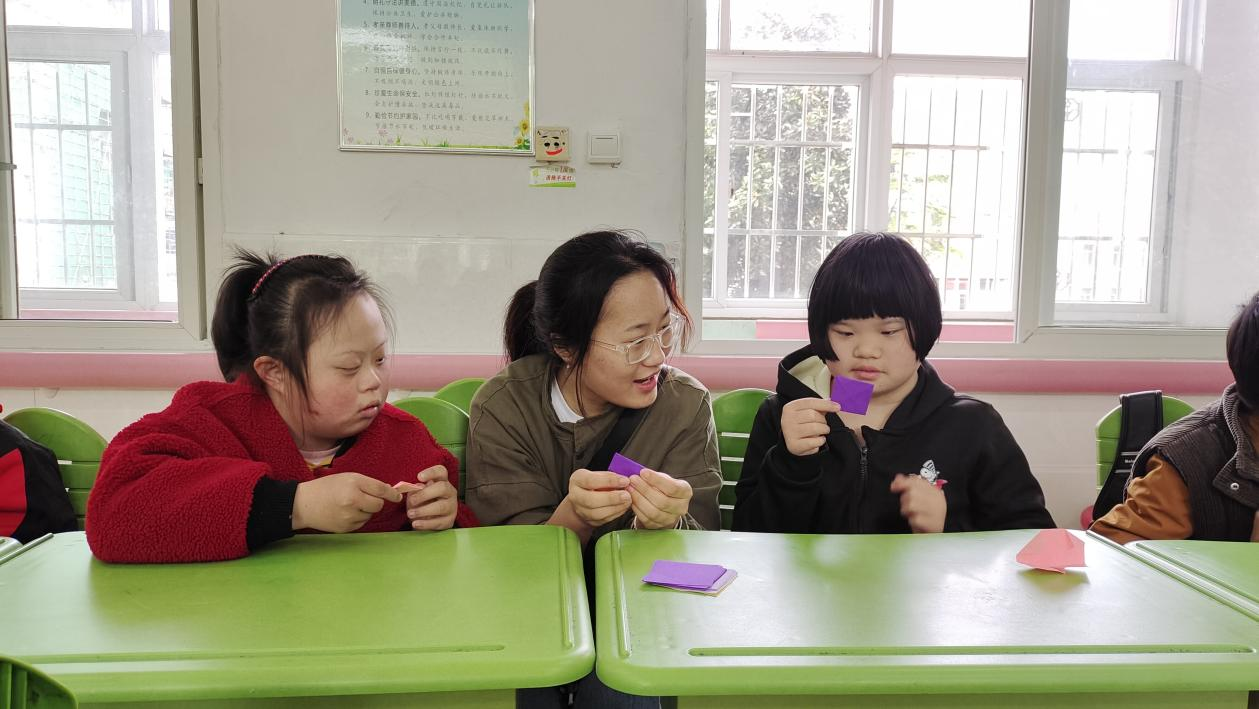 9:00,志愿者为这些特殊儿童准备了彩色折纸,为他们上了一节别样的手工课。在公司老师的帮助下,采取一对一的教学,为培养这些儿童的动手能力提供了更好的方式。上课期间,志愿者们细致耐心,手把手教学,反复示范并不断和他们进行交流,员工也积极配合,努力跟随志愿者做出正确的步骤,一节课结束,员工们都能学会基本的折纸方法。这种一对一的模式有效的提高了特殊儿童动手能力,也让他们感受到了来自外界的关爱,促进了特殊儿童与他人的沟通。