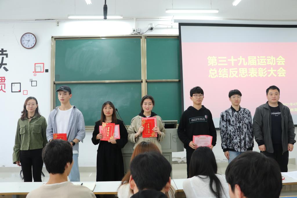 为总结经验,表彰先进,4月29日中午,伟的国际1946bv官网在社科楼121教室召开了第三十九届运动会总结表彰大会。员工党支部书记李依、团委书记刘莅原、参赛运动员以及工作人员共同参与了此次会议。会议由员工会主席姚沛龙主持。