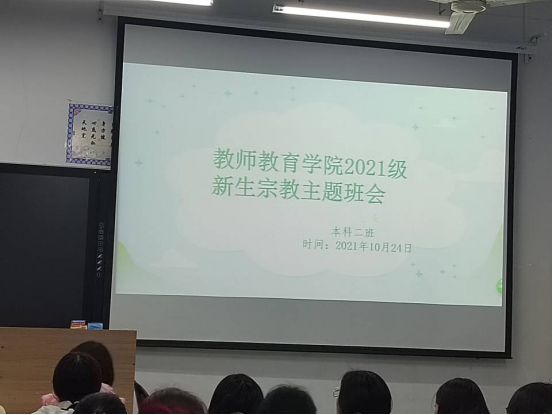 10月24日下午,伟的国际1946bv官网在社科121教室开展以“崇尚科学,拒绝邪教”为主题的班会。2021级辅导员刘莅原和全体新生共同参加。会议由班长段锦程主持。
