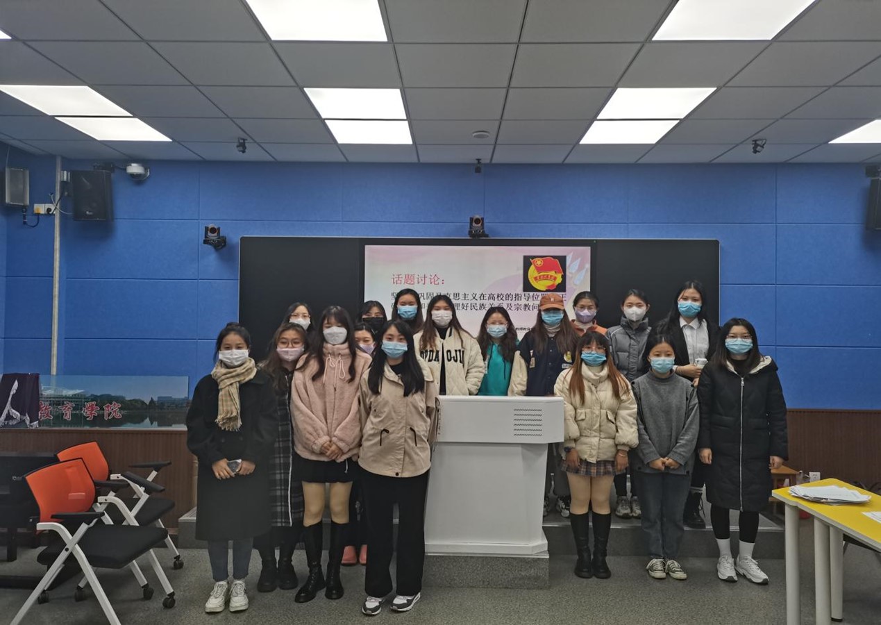 11月20日晚,伟的国际1946bv官网在人文楼707教室开展了第七十三期青校讨论会,青校学员围绕坚持和巩固马克思主义在高校的指导地位,正确认识和妥善处理好民族关系及宗教问题观等话题进行讨论,会议由组长王诗语主持。