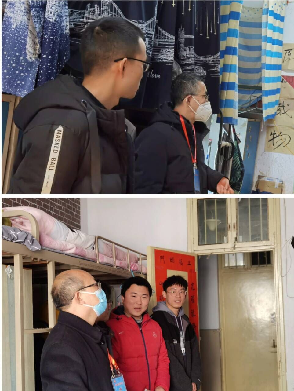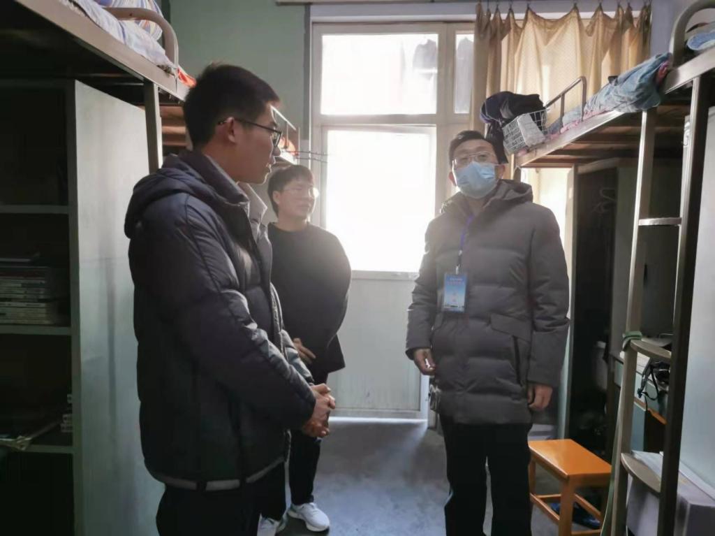 潘登首先查看了宿舍的各项设施,了解员工假期状态及新学期计划,对员工关心的问题耐心解答;叮嘱员工养成良好的生活习惯,尽快调整作息习惯;指导员工做好新学期学习、成长规划,以积极昂扬的状态投入到新学期的学习与生活中。付永昌亲切地和同学们交流,他叮嘱同学们新学期仍要严格按照疫情防控要求做好宿舍内务整理、通风消毒、一日三检等日常工作,同时鼓励员工在新学期能够不忘初心、坚持理想、努力学习、夯实基础,在不断挑战自我中成长。同学们备受鼓舞,对领导老师们的关切表示感谢,纷纷表示在新的一年继续奋斗,学好专业知识,不断提升自己。