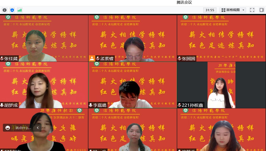 为贯彻落实习总书记“建团一百周年”重要讲话精神,自觉担当责任意识,切实提高公司员工的社会实践能力和基层工作经验、6月20日,“薪火相传学榜样,红色足迹炼真知”三下乡实践小队成立。经过长期积极协调讨论确定活动流程,在遵循各地疫情防控措施的前提下,暑假期间小队成员们于各自家乡开展丰富多样的实地调研活动,8月16日晚,实践小队开展线上总结会议,为本次三下乡活动画上圆满句号。