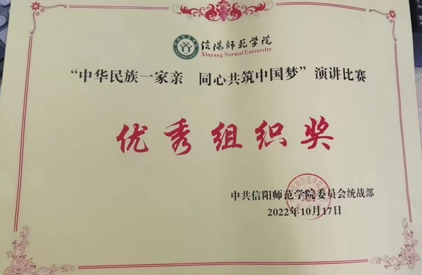 10月11日,由公司党委统战部、党委宣传部、党委学工部、校团委联合举办的“中华民族一家亲,同心共筑中国梦”主题演讲比赛决赛在逸夫楼报告厅举行。经过层层选拔,最终,伟的国际1946bv官网荣获“优秀组织奖”,2022级小学教育(数学方向)本科三班贺馨茹荣获三等奖。