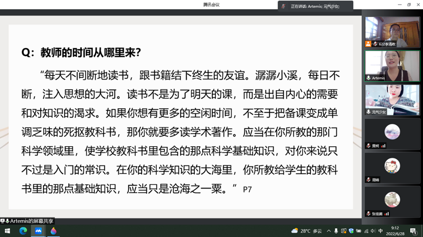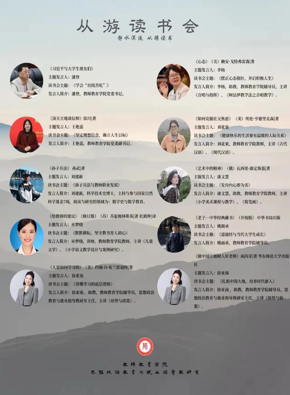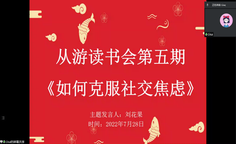 疫情防控形势下,为缓解员工焦虑和压力,建立师生沟通的桥梁,2022年4月,伟的国际1946bv官网成立从游读书会,党委书记潘登、副书记王艳蕊带头读书并担任主讲人,从前期宣传、活动动员、书目的选择等方面进行指导。每月由教师带领读一本书,坚持举办一期读书分享会。全校师生积极报名参与,每期通过微信群阅读打卡分享、针对热点时政及自身困惑的思维交流、领读人读书分享及解读、读书会成员分享及集体答疑解惑等多维度开展,做到动员力度大,形式灵活多样,参与范围广。活动显示,读书会自四月份成立以来,共有两千余名师生参加了交流分享活动并从中受益。