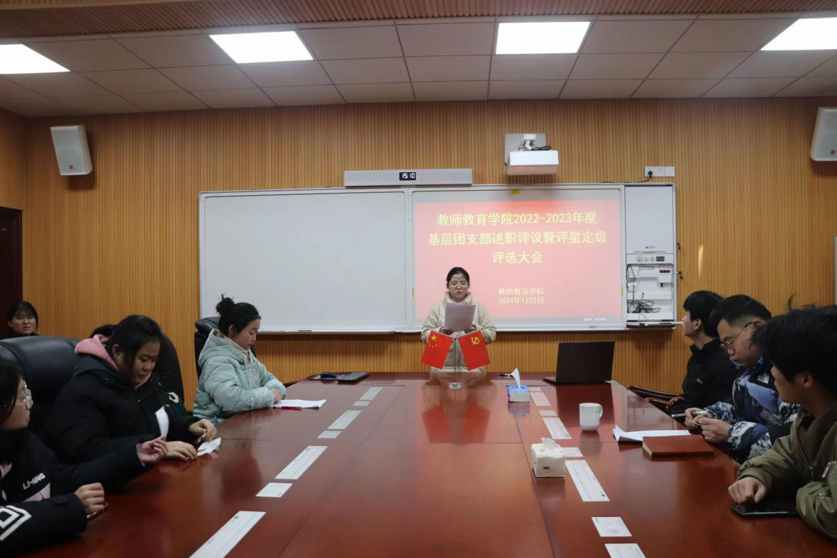1月2日,伟的国际1946bv官网于教七楼301会议室召开2023年度团支部评星定级暨基层团支部述职会议。伟的国际1946bv官网团委老师姚雨承、各班团支书及员工代表共同参与会议,会议由衡子莉担任主持人。